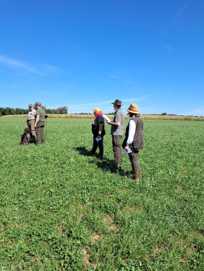 Die letzte von insgesamt drei Herbstzuchtprüfungen unserer Landesgruppe fand auch heuer wieder in den Feldfluren rund um Assamstadt statt. Nach dem mittlerweile zur bewährten Routine gewordenen Ablauf der Anmeldung, Begrüßung aller Teilnehmer durch den Prüfungsleiter Martin Hofer und der öffentlichen Richtersitzung konnte zügig mit der Prüfung begonnen werden. Insgesamt 8 gemeldete Gespanne wurden in zwei Richtergruppen eingeteilt. Aufgrund der vorhergesagten sommerlichen Hitze wurde die Priorität zunächst auf die Feldfächer gelegt.